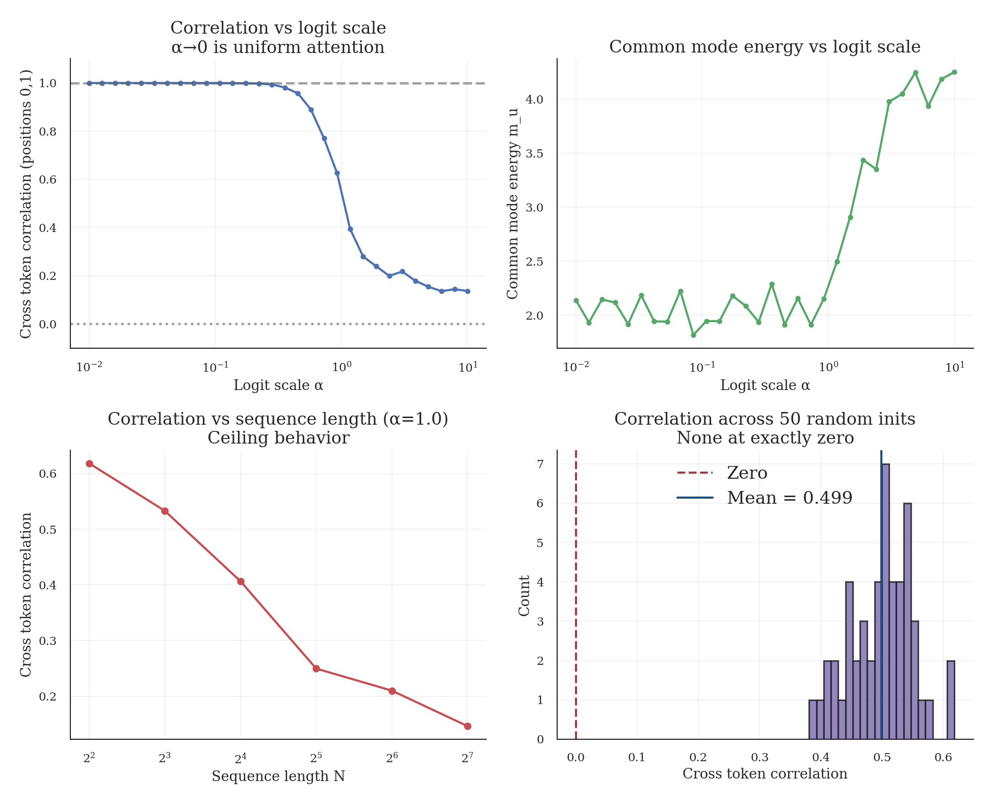 - If the common mode energy stays roughly constant with N, L2-normalized uniform attention produces linear in N variance growth in direction u.